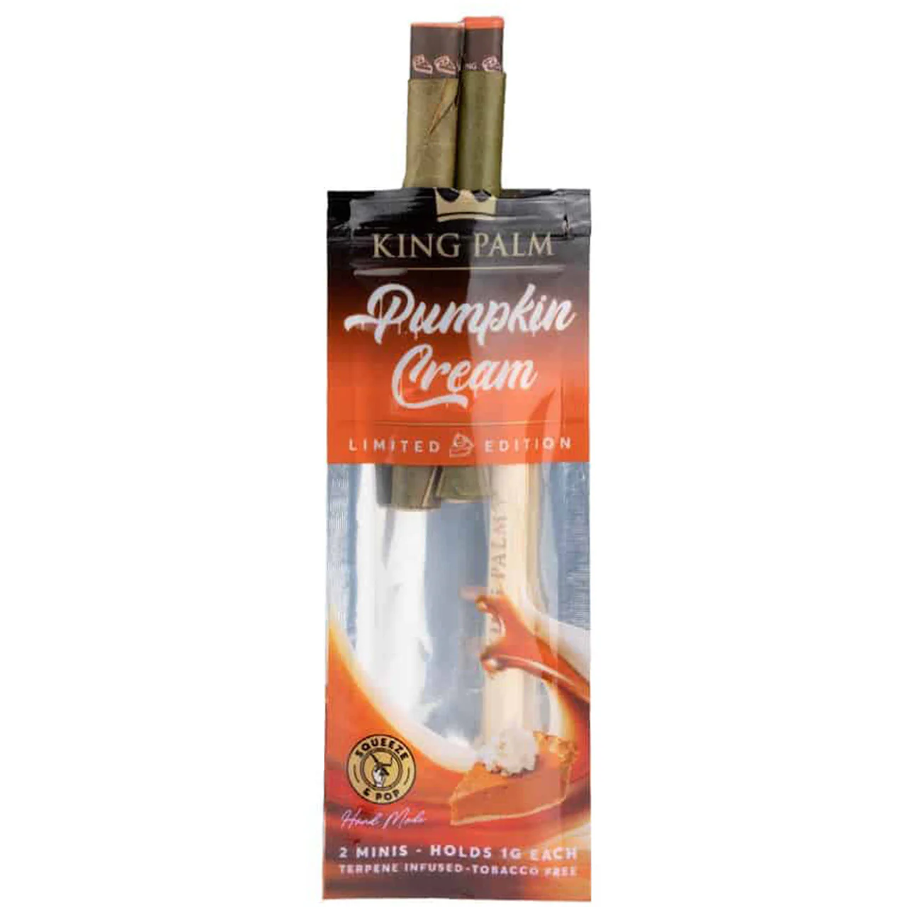 King Palm crafts our Mini Rolls using 100% natural ingredients to help create a smoother, cleaner smoke. Without the presence of tobacco or any harsh chemicals, these Pumpkin Cream Mini Rolls not only taste delicious, but they smoke like a dream, too. No matter what the season is, you’ll fall in love with King Palm’s Pumpkin Cream Mini Roll. This pumpkin-flavored roll will bring you right into the middle of fall with its creamy, spicy flavors. When gently squeezed, notes of pumpkin are released with your smoke, creating a flavor profile that your mouth will love.